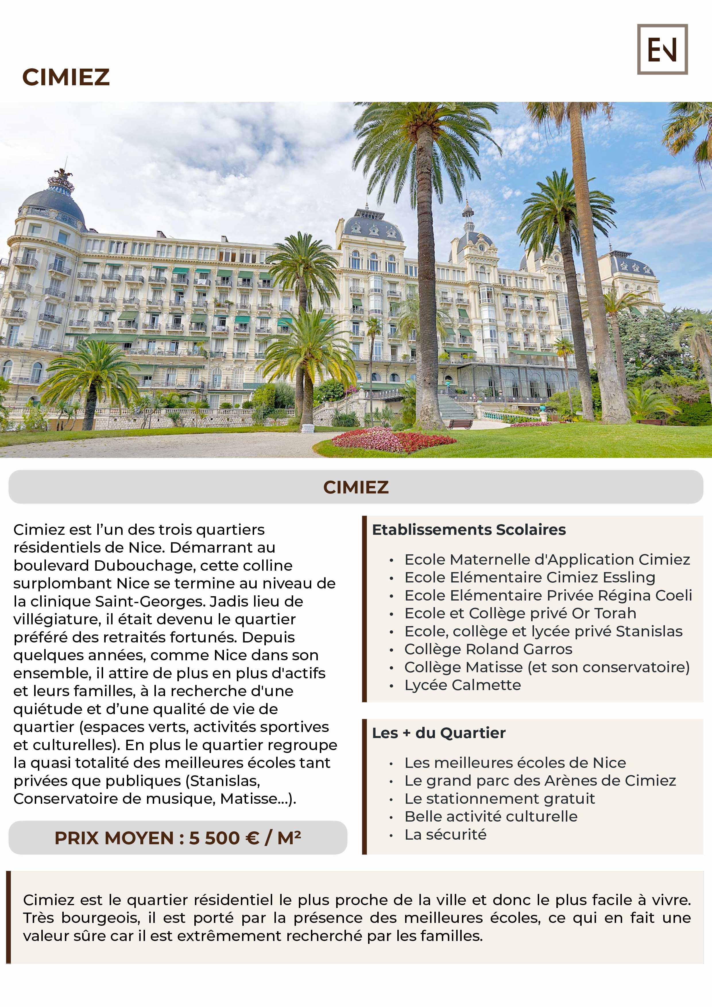 Cimiez est le quartier résidentiel le plus proche de la ville et donc le plus facile à vivre.
