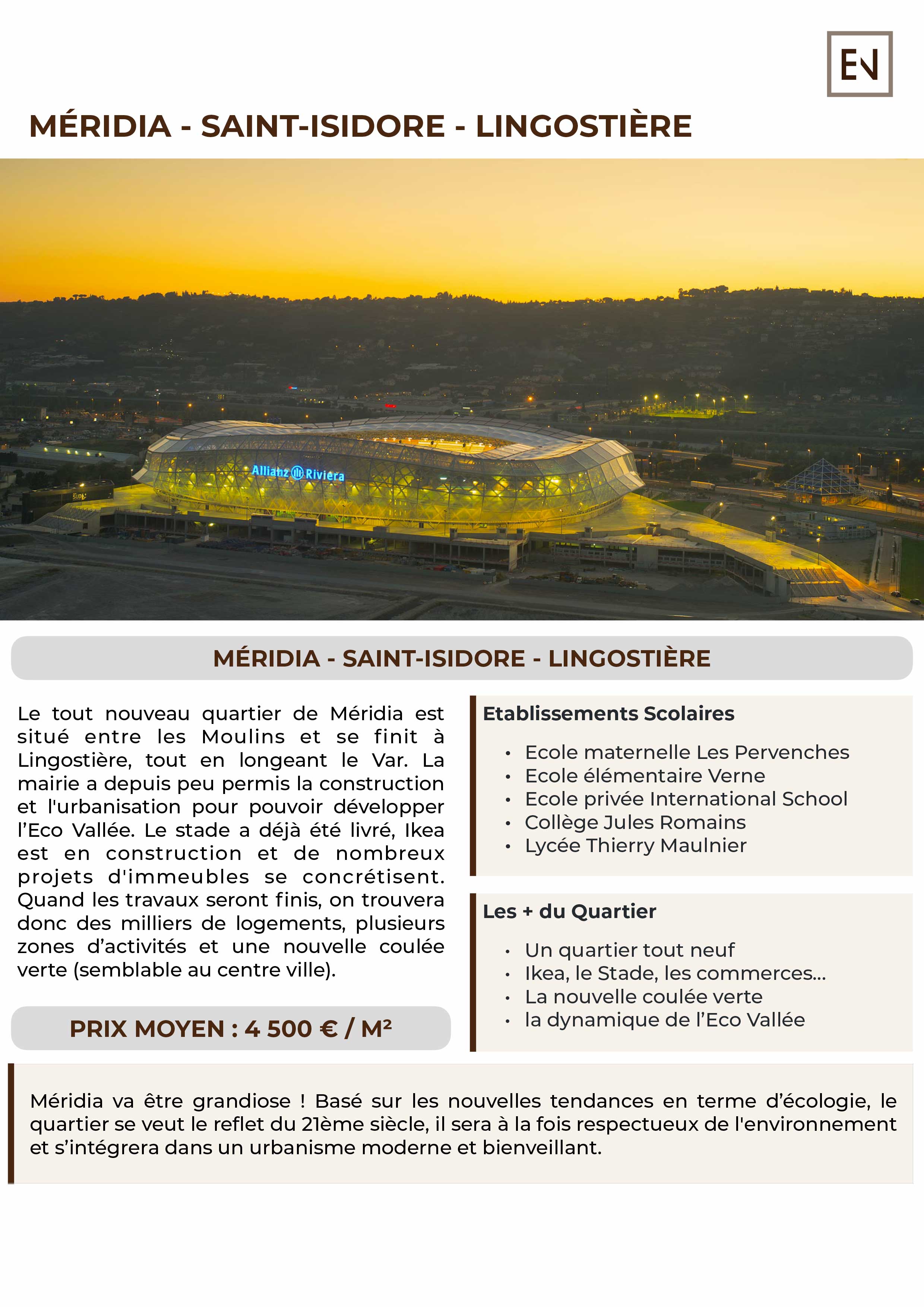 Le tout nouveau quartier de Méridia est situé entre les Moulins et se finit à Lingostière, tout en longeant le Var.